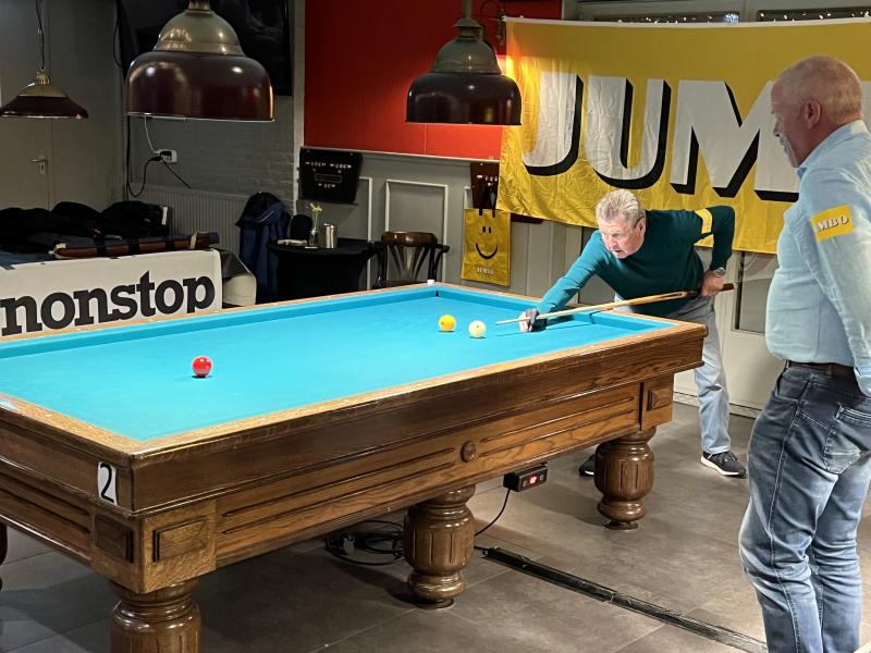 Afgelopen zaterdagavond was het dan eindelijk zover. In een goed bezette Flamingo Bar zou de 43e editie van het Driebanden Kampioenschap van Ulvenhout haar apotheose beleven. Speciaal voor het publiek op de tweede rang was er een groot scherm geplaatst waarop de toeschouwers de wedstrijd goed konden volgen. Omdat er een kleine vertraging in de weergave zat, konden de beelden ook eventueel als VAR dienen.
